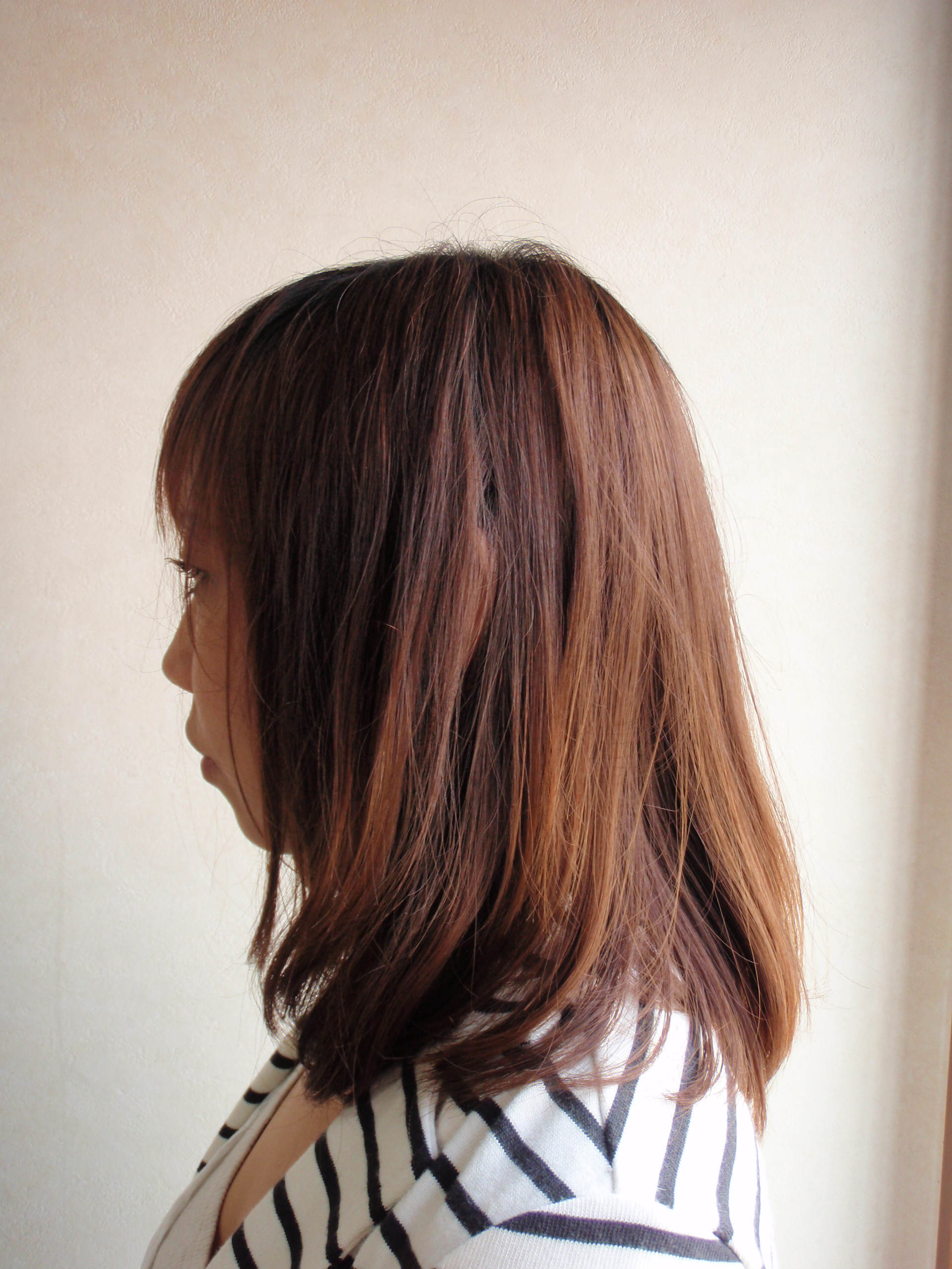 重たい髪型を利用して、今まで「外はね」で恐れられて「肩下5~10cm」の長さが特徴です。 「短過ぎず、長過ぎず!」の微妙なニュアンスの髪型にチャレンジしてみませんか? 毛先にパーマをかけるとスタイリングが楽になりますよ!
